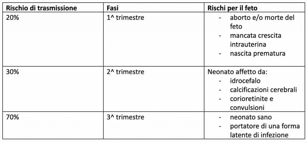 - Nel caso della toxoplasmosi, l’agente patogeno è il Toxoplasma gondii. Si tratta di un parassita che ha come ospite definitivo il gatto, mentre l’uomo è l’ospite intermedio. Il gatto attraverso le feci elimina le uova, che rappresentano la principale fonte di questo parassita. ll soggetto che contrae una toxoplasmosi resta protetto per tutto l’arco della vita da recidive, perché risponde all’infezione con produzione di anticorpi e linfociti specifici. In gravidanza il parassita può passare al bambino attraverso la placenta, provocando malformazioni o addirittura l’aborto o la morte in utero.
