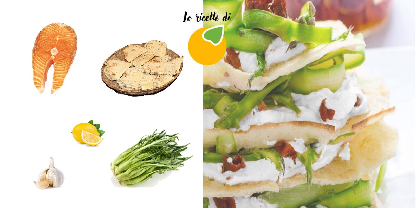 Un piatto unico LEGGERO e molto ORIGINALE: Lasagna fredda di pane carasau, puntarelle, salmone e feta!