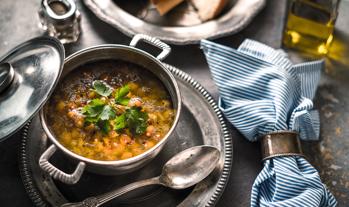 La zuppa di ceci e orzo rappresenta un ottimo piatto unico da servire la sera.